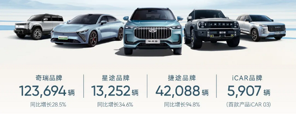 分品牌來看,6月,奇瑞品牌銷量123694輛,同比增長28.5%;1-6月銷量706767輛,同比增長41.9%。星途品牌銷量13252輛,同比增長34.6%;1-6月銷量54447輛,同比增長28.9%。捷途品牌6月銷量42088輛,同比增長94.8%;1-6月銷量223555輛,同比增長98.9%。iCAR品牌首款產(chǎn)品上市4個月,6月銷量5907輛;1-6月銷量25586輛。