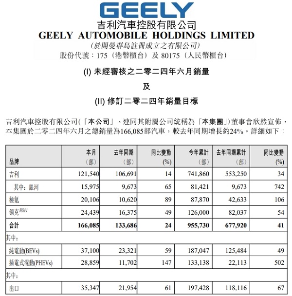 上半年銷量增長41%,吉利汽車上調(diào)全年目標(biāo)至2